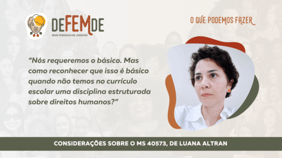 https://defemde.ong.br/wp-content/uploads/2025/11/Banners-Eventos-Sympla-Twitter-Evento-FB-1024x576.png 1024 576 Rede Feminista de Juristas Rede Feminista de Juristas https://secure.gravatar.com/avatar/cefd8ce79beb23c6586c1aaba13cb67f0845672b4726e7e29b7a89eb3b63c6ea?s=96&d=mm&r=gArtigo de Luana Altran, integrante da Rede Feminista de Juristas – deFEMde, tratando mecanismos do MS 40573, que requer a ministra negra no STF